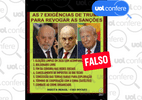 Não existem informações públicas que corroborem a alegação de que o presidente dos EUA, Donald Trump, tenha feito sete exigências ao governo brasileiro para retirar o nome do ministro do STF Alexandre de Moraes da lista de sancionados pela Lei Magnitsky.