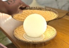 Lustre bolinha das antigas e peneiras viraram esta luminária; veja como